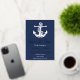 Nautical Navy Blue Anchor Modern QR Code Wedding Foil Invitation