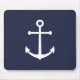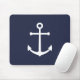 Modern Minimalist Nautical Mouse Pad featuring white anchor on navy blue background.