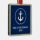 Nautical Navy Blue Anchor Name Year Metal Ornament