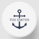 Personalized nautical design featuring a navy blue anchor with your custom family name in a classic serif font.