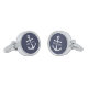 Nautical Navy Blue Anchor Personalized Name Cufflinks