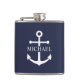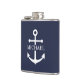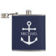 This personalized gift features a white anchor design with custom name in a classic white serif font on navy blue background.