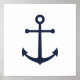 Modern Minimalist Nautical Poster featuring navy blue anchor on white background.