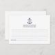 Designed with a navy blue anchor illustration, it features personalized bride and groom monogram, custom text in a navy blue serif font on a white background.