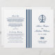 Elegant wedding ceremony program includes a boat anchor with tied rope monogram and stripe detail where the programs should be folded. Personalize the navy blue custom text on the front and inside pages with your ceremony information and thank you message. Note: these text weight paper programs arrive flat and require folding to assemble. The white background can be customized.