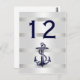 Elegant Nautical Navy Blue Anchor, White with Silver Look Stripe Background - Table Number Card