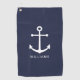Nautical Navy Blue Anchor with Custom Name Golf Towel