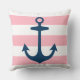 Nautical Navy Blue Anchor with Pink Stripes Throw Pillow