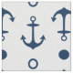 Custom fabric features a nautical boat anchor and geometric circle pattern in navy blue. White background color can can be customized.