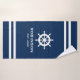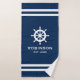 Nautical navy blue and white stripe custom family name Bath Towel Set. Elegant bathroom towels with old ship wheel logo and year date. Stylish typography print design. Chic home decor for bathroom, toilet, guest house, hotel, guest room, beach cabin, destination wedding venue etc. Customizable background color. Includes little washcloth, small hand towel and big bath towel. Unique high quality printed present for friends, family, newly weds, bride and groom, couple, sailor, skipper, boat captain, boss, co worker, colleague etc. Classy home accessories with family surname and established date of marriage.