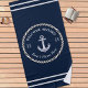 Nautical Navy Blue Boat Name Anchor Rope Beach Towel