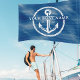 Nautical Navy Blue Boat Name Anchor Rope Boat or Car Flag