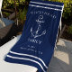 Nautical Navy Blue Custom Family Anchor Beach Towel