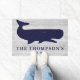 Nautical Navy Blue Family Name Whale Vacation Home Doormat