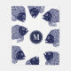 Bold and nautical navy blue fish heads illustration fleece blanket featuring your personalized monogram letter.
