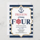 Nautical Navy Blue Four 4th Fourth Birthday Party Invitation