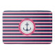Nautical Navy Blue Hot Pink Stripes Anchor Design Bathroom Mat