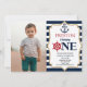 Nautical Navy Blue One Picture 1st First Birthday Invitation