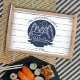 Serve in style with this beautiful, personalized serving tray! Perfect for family gatherings or adding a touch of rustic charm to your lake house decor. The design features a serene lake house scene with pine trees, a boat, lake water, and an anchor, all in elegant navy blue against a white rustic wooden background. Customize the tray with your family name in stylish blue typography on the curved layout of the logo. Below the logo, you can personalize the established year, making it a unique and thoughtful keepsake for your family.