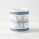 Nautical navy blue stripe custom monogram big giant coffee mug