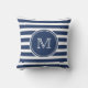 Nautical Navy Blue Stripe Monogram Throw Pillow