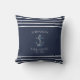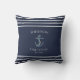 Nautical Navy Blue Striped Anchor Lake House Throw Pillow