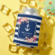 Nautical Navy Blue Striped Anchor White Frame Watercolor Pink Blush Floral Wedding Can Cooler