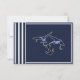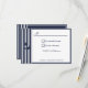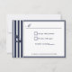 Nautical navy blue swallows RSVP invitations - the front design features a anchor ribbon with a outline that runs along the edges of the card. The designs and text are navy blue on top of a white background. The back design continues the ribbon around the card and the outline and background colors have now been switched, where the outline is white and the background is navy blue. In the middle is two swallows in flight, working together to carry a anchor on a rope. The paper by default is set to basic invitation stock, but can be changed by clicking 'choose your style' then using the Paper drop down box pick one of the options. Each invitation comes with a white envelope. To change the font, font size, or font color, click the customize button below the Nautical RSVP invitation. Note you may have to customize it if certain wording is too long and so it fits the design better. If your satisfied with the font setup, you can use the personalize feature to change the demonstration information to your personal details. Clicking the small images of the front/back of the card with change to that side so it can be altered. When done check the information you applied is correct and that you have no spelling errors on both sides of the card.