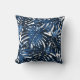 Nautical Navy Blue Tropical Jungle Leaves Throw Pillow
