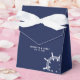 Nautical navy blue and white wedding favor boxes (tent favor box with white ribbon) with white wheel and changeable text - you can add bride's and groom's name and wedding date.