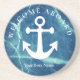 Nautical Navy Blue Welcome Aboard Boat Name Anchor Coaster