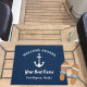 Nautical "Welcome Aboard" boat mat design features a simple, stylish navy blue and white coastal style design with boat anchor accent. Personalize the custom text with the name of your boat along with her location city and state. Makes a great boating themed gift for boat owners.