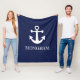 Nautical Navy Blue Welcome Aboard Boat Name Anchor Fleece Blanket