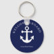 Nautical Navy Blue Welcome Aboard Boat Name Anchor Keychain