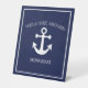 Nautical Navy Blue Welcome Aboard Boat Name Anchor Pedestal Sign