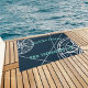 Nautical Navy Blue Welcome Aboard Compass Rose boat mat, featuring a modern design with compass roses and navigation lines in white on a navy blue background. Personalize the boat mat with your boat's name. This stylish coastal design also makes a great gift for a boat owner.