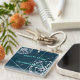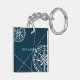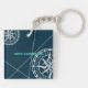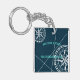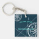 Nautical Navy Blue Welcome Aboard Compass Rose keychains, featuring a modern design with compass roses and navigation lines in white on a navy blue background. Personalize the keychain with your boat's name and port location. This stylish coastal design also makes a great gift for a boat owner.