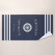 Nautical Navy Blue White Family Name Lake House Bath Towel
