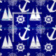 Nautical Navy Blue White Pattern Fabric
