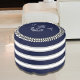 Nautical Navy Blue White Stripe Anchor Monogram Pouf