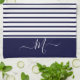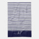 Nautical Navy Blue white Striped Monogram initial Kitchen Towel