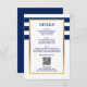 Elegant custom RSVP nautical wedding cards: location, attire, QR CODE, webiste. Navy blue and white stripes with faux gold frame and anchor. Perfect any destination/nautical/summer wedding theme. Editable cards - easy to add your info or changed text font, color and size.