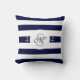 Nautical navy blue white stripes throw pillow