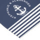 Stylish decorative table runner features a nautical navy blue and white stripes with white anchor vector illustration and name on a navy blue background you can easily change the color. Matching items available in our store. www.zazzle.com/giftsforanyoccasions