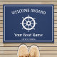 Nautical Navy Blue White Welcome Aboard Boat Helm Doormat