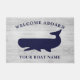 Nautical Navy Blue White Welcome Aboard Boat Name Doormat. Personalize this New England nautical beach house-themed doormat with your boat name. Set features a popular whitewashed distressed weathered wood look with a whale. Custom orders available at truullc@gmail.com