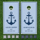 A soft and sophisticated wedding cornhole set featuring the anchor monogram design on a dusty blue background with a navy border. Your initials flank the anchor with your names, established date, and wedding date below. The muted blue tone gives this set a refined coastal feel, perfect for elegant outdoor receptions. A beautiful keepsake and a thoughtful gift for the couple. All text is fully editable.