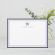 Professional and stylish navy blue nautical beach starfish correspondence note card. Perfect for if you're throwing a boat party, live near the sea or are known for your nautical expertise - these are the perfect note card for you to send a guest or a friend a handwritten note. The card can be personalised with the inclusion of your name. The reverse of the card is navy blue and the front features the image of a blue starfish. The design features a triplicate border in different thickness widths.