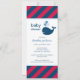 Nautical Navy Red Whale Slim Baby Boy Shower Invitation