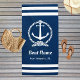 Nautical Navy Rope Anchor Boat Name Beach Towel